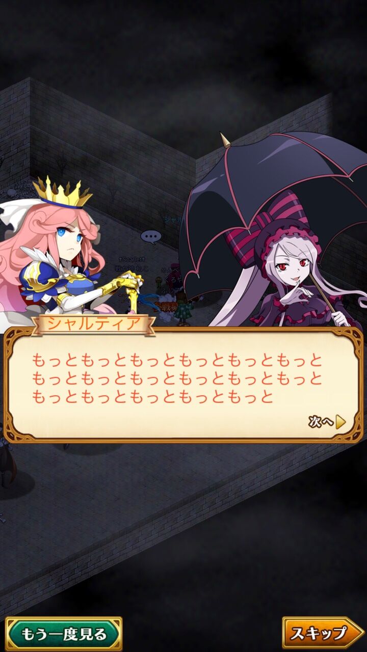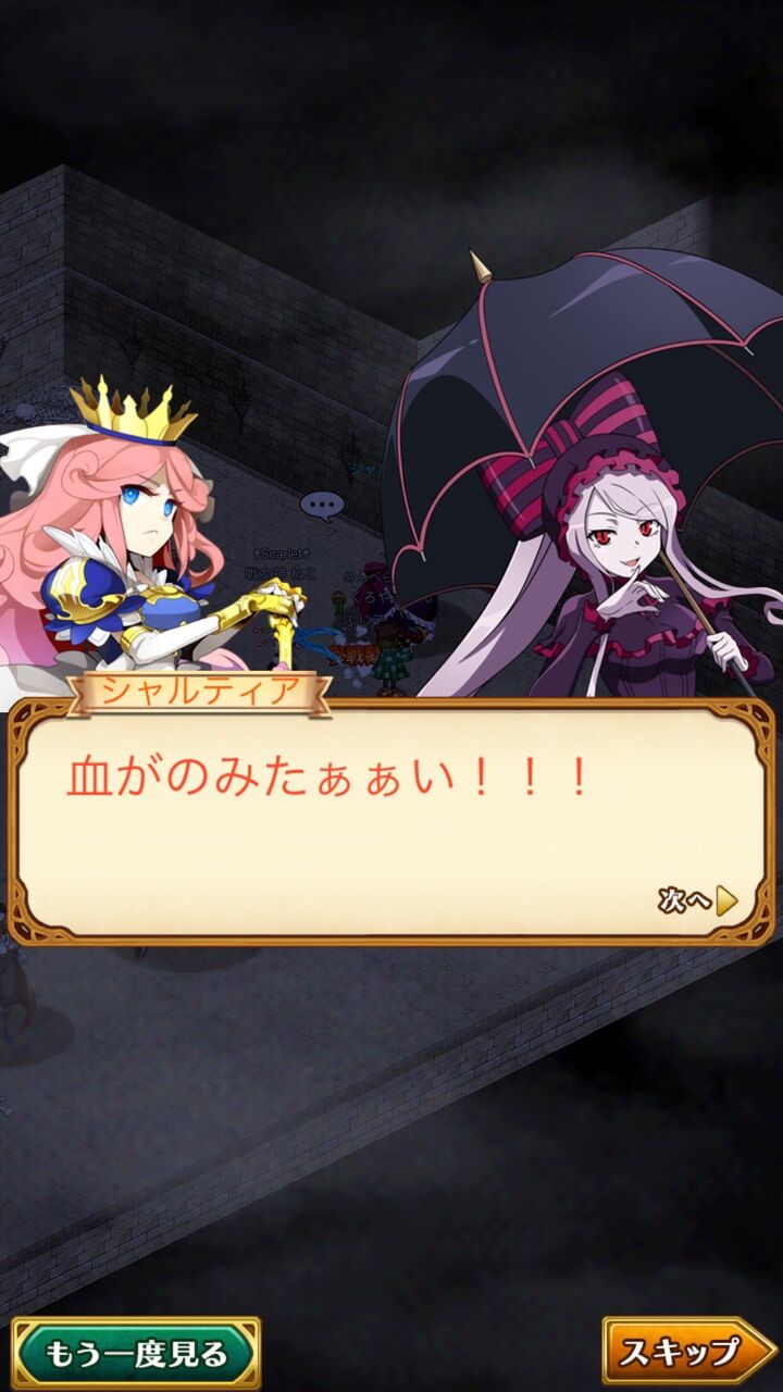 とにかく、シナリオとしては相手側が基本的に敵の立ち位置で進む新鮮なコラボでした。あまりないタイプですよね・・・ 普段は共闘がメインですし。今回は共闘のポジションはモモン&ナーベが担いましたが自作自演だしなぁ・・・